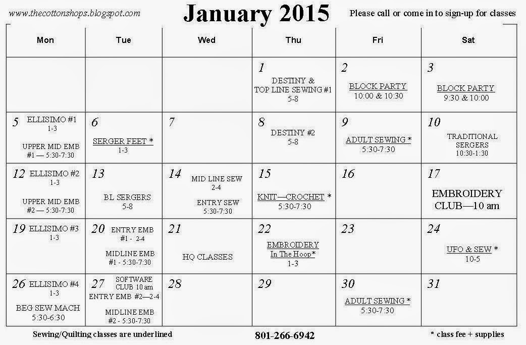 Make sure to mark your calendar NOW for our Embroidery Club. We meet on the 3rd Saturday at 10. We show different ideas, projects and techniques. Fun prizes are given away at each meeting. Bring a show & tell item. Who else can really appreciate your hard work like us? No sign up is necessary. Just come and have fun!